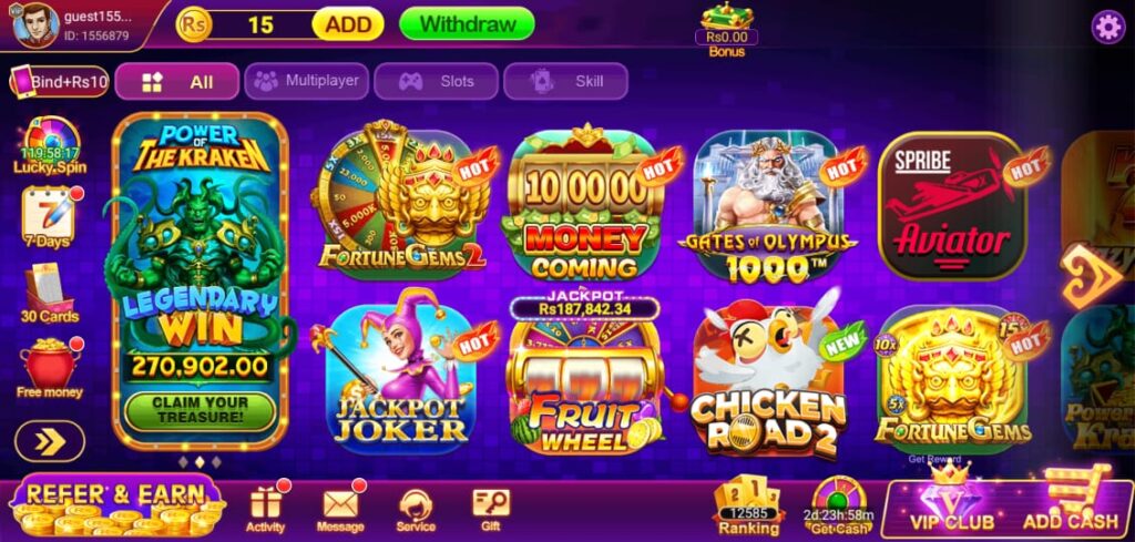 Players receive daily login bonuses, surprise gifts, and spin rewards that help increase balance without investment.
