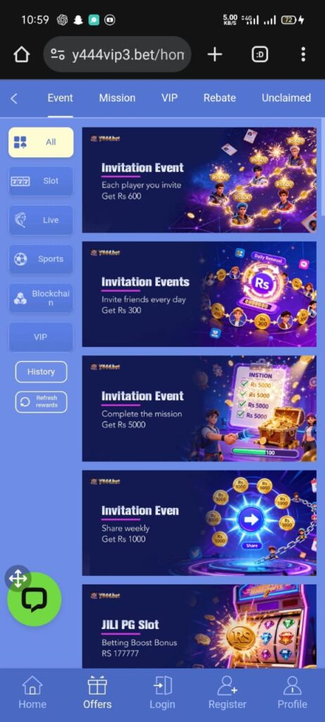 Unlike most apps that demand deposits, Y444 Game allows you to earn without investment. You can start with bonuses, daily check-ins, and referral rewards.